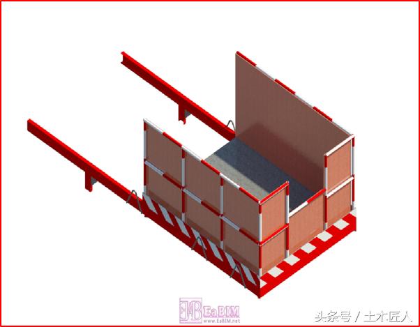 一般的悬挑式卸料平台由定型制作的的料台、钢丝绳及对应的卡扣、结构上预埋的锚固环和拉环及一些起固定作用的小配件组成。卸料平台的施工必须由专业的技术人员按照现行的规范进行设计,并编写专项施工方案,计算书和图纸也应在方案中体现。在施工前应对作业人员进行相应的安全技术交底,并对卸料平台及周边的环境进行检查,做好安全防护措施。