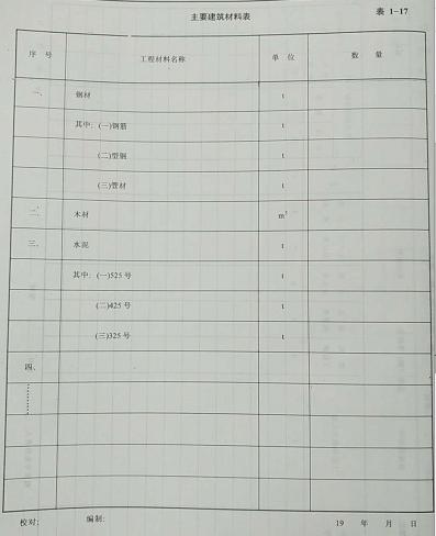 1)土建工程一般应提供钢材,水泥和木材(折合成原木)三种主要材料;