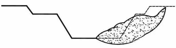 b. 由于设计锚杆太短,锚杆和围护墙均在滑裂面以内,与土体一起呈整体滑移,致使基坑整体滑移破坏,如图5.4 (b)。