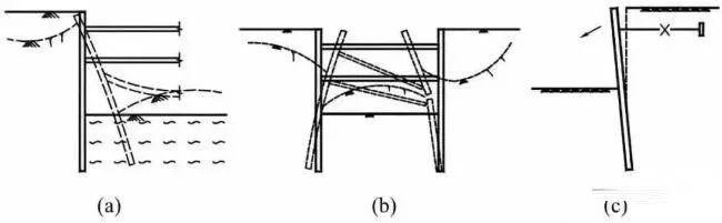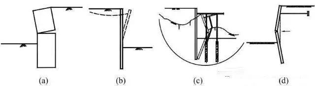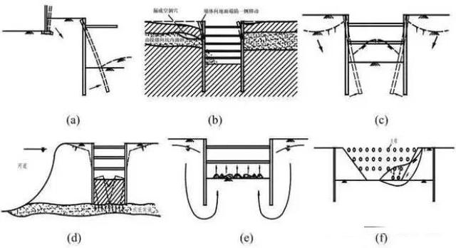 1、根据围护形式不同,基坑的第一类失稳形态主要表现为如下一些模式。