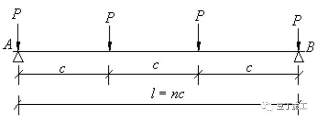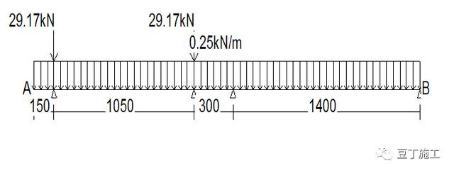 5.联梁计算:按照集中荷载作用下的简支梁计算,集中荷载P传递力,计算简图如下,计算联梁的支座力、强度,强度应满足规范的要求。