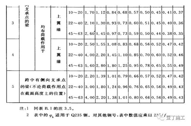 其中b均匀弯曲的受弯构件整体稳定系数,查表《钢结构设计规范》(GB50017-2003)附录B得到: