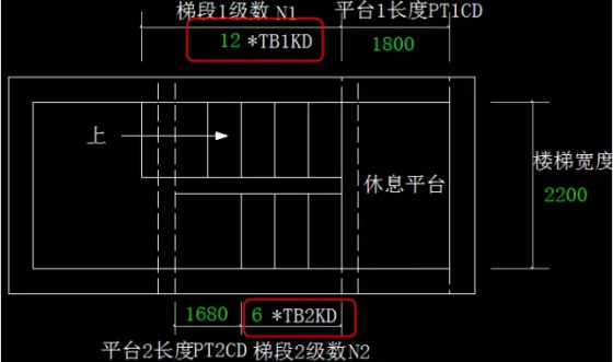 答:选项标准双跑2,这个参数图中可以分别输入两跑的踏步宽度、踏步高度及踏步个数。
