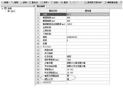 3.墙梁中的顶层连梁的箍筋根数与楼层连梁的计算是不同的,所以我们在软件中需要在连梁属性中注明。如下图: