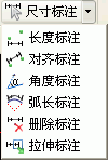 软件提供尺寸标注的方式有长度标注、对齐标注、角度标注和弧长标注,并且可以删除标注和拉伸标注。
