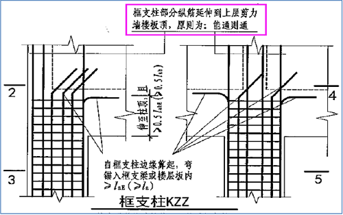 【解答】 11G101-1 平法图集中第 90 页,有明确说明框支柱的纵筋伸到上层剪力墙楼板顶,原则为:能通