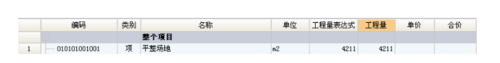 例如:平整场地,在工程量列输入4211,如下图所示。