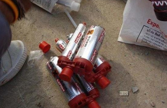 (4)配胶、注胶、插筋必须流水作业,连续进行。配制好的胶
