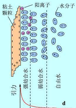 当黏性土的含水量较小时,土粒表面的结合水膜很薄,颗粒间很大的分子力阻碍着土的压实,这时压实效果就比较差;当含水量增大时,结合水膜逐渐增厚,粒间联结力减弱,水起着润滑的作用,使土粒在相同压实功条件下易于移动而挤密,所以压实效果较好;但当土样含水量增大到一定程度后,孔隙中就会出现自由水,压实时,孔隙水不易排出,形成较大孔隙压力,势必阻止土粒的靠拢,所以压实效果又趋下降。这就是土的压实机理。