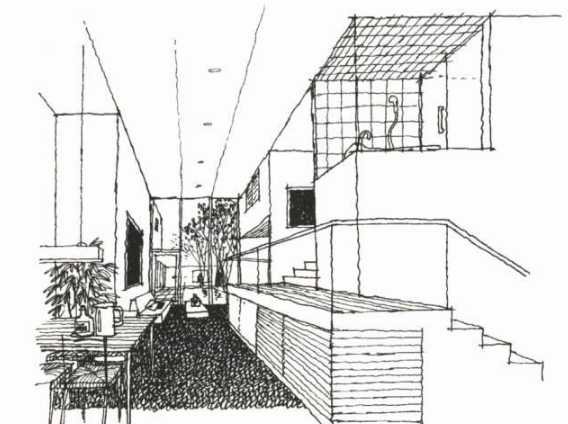 下图是另外一个有效利用斜面的住宅。该住宅将斜面设计成了楼梯。