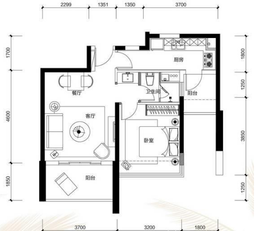问题可能就出在示意家居的尺寸上,有时候开发商为了显示出房间的宽敞感,会在户型图上适当将家居尺寸画小,所以,大家一定要警惕不可信的家具,自己要对常用家具尺寸心中有数。
