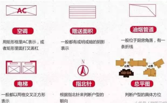 户型图上的三大要素是图画、数字和文字,其中主要以图画来表示房屋结构以及功能分布,所以,如果你不认识这些图标,你就不可能看懂户型图。