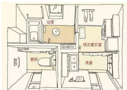 干湿分区就是指厨房、卫生间这两个湿气较重且较容易产生脏污的房间应与精心装修的怕水怕脏的卧室客厅等尽量分离。