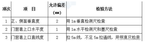 门窗套安装的允许偏差及检验方法应符合下表要求。