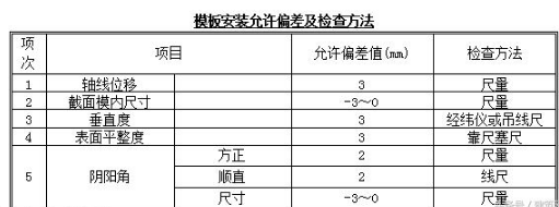 模板安装允许偏差及检查方法