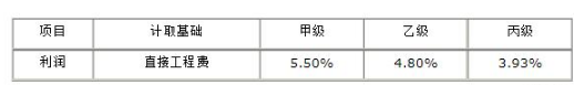 四、其它间接费:是由临时设施费、税金、利润构成,它是装饰企业施工必须发生但又不能在直接费和施工管理费中发生的费用。它的取费标准是:
