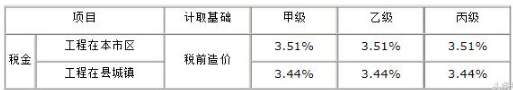 3、税金指国家税法所规定的应计入建筑安装工程费用的营业税、城乡维护建设税及教育费附加三项应缴税。 税金计算基础 :税金=税前造价x 计算系数 (税前造价=直接工程费+措施费+其他项目费+管理费+利润+规费;计算系数根据工程所在地选取。