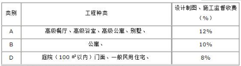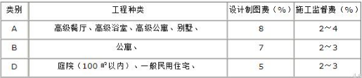 其次根据业主装修的档次、房屋结构、面积以及设计元素的不同。一般收费在15%~20%之间;设计费用在10%~20%之间。