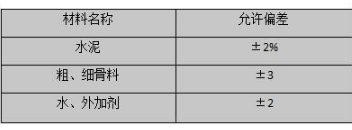 d、现场自拌混凝土原材料每盘称量的允许偏差应符合下表的规定: