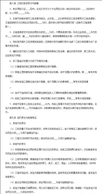 1、填写约定工程预付款的额度应结合工程款、建设工期及包工包料情况来计算。