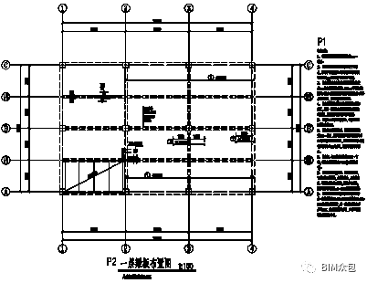 通过以上的操作,我们已经添加了2条辅助轴线:1/A轴和1/B轴。下面,我们通过这两条轴线形成的交点,来添加次梁线。