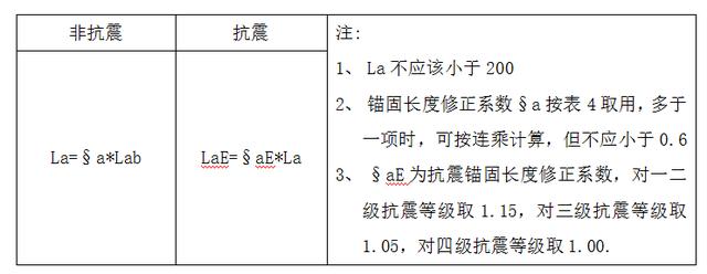 表3 受拉钢筋锚固长度La、抗震锚固长度LaE