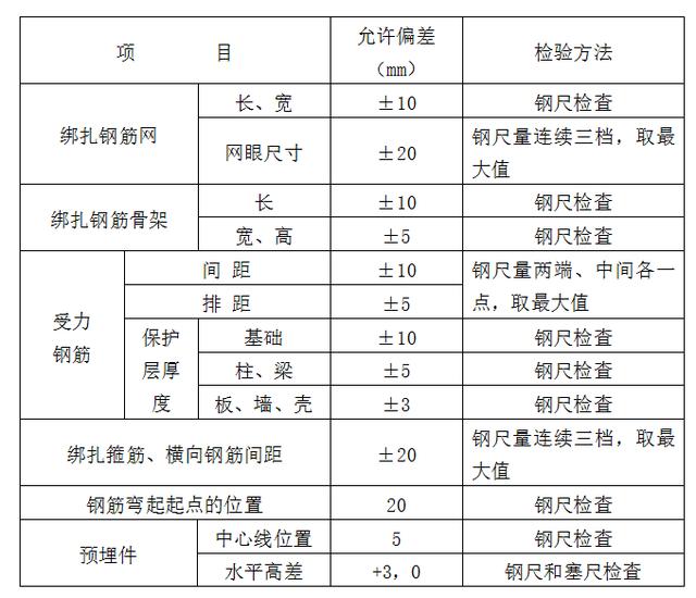 表6 钢筋安装位置的允许偏差和检验方法