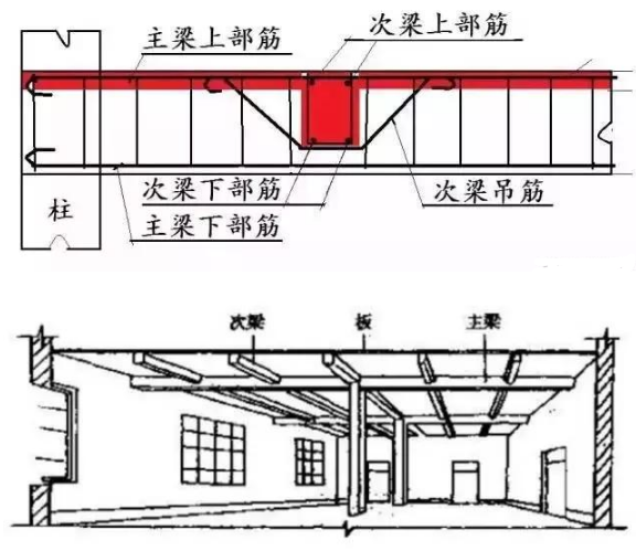 一般情况下,次梁是指两端搭在框架梁上的梁。这类梁是没有抗震要求的,因此在构造上它与框架梁有以下不同,现以国标图集03G101-1为例加以说明: