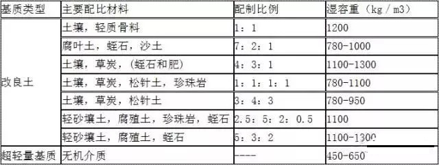 ▲常用基质类型和配制比例参考