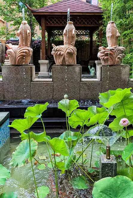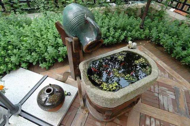 金鱼(庭院园林中常用的是锦鲤,金鱼的一种)不仅在古典庭院之中常用,在古典园林中也常用。金鱼以其艳丽富贵的色彩被人所喜爱同时也成为富贵的象征。