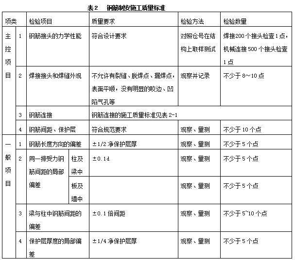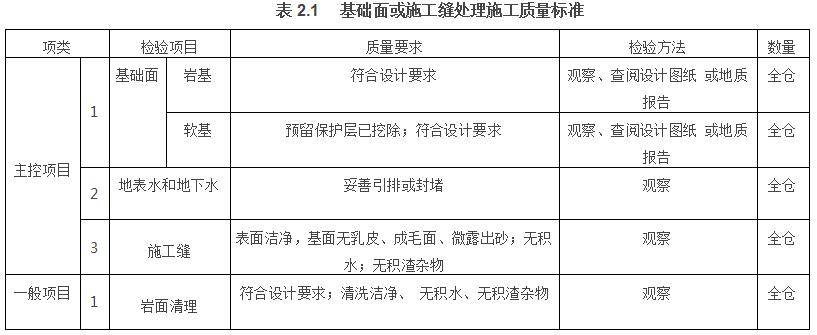 2.1 基础面或施工缝处理施工质量标准见表2.1。