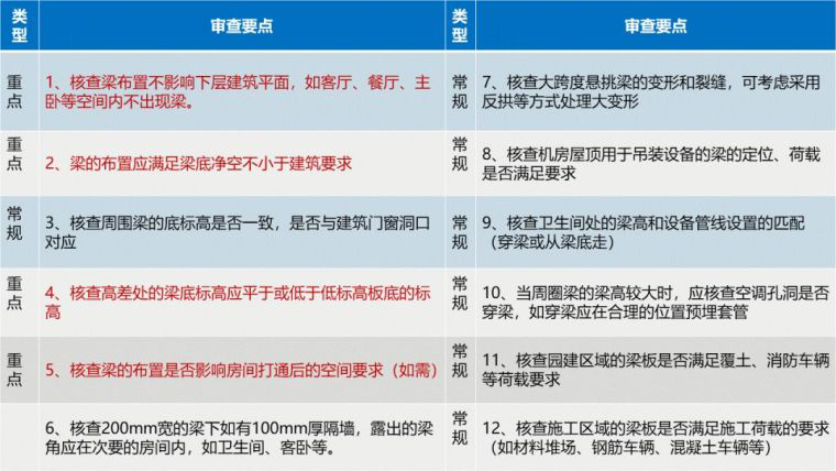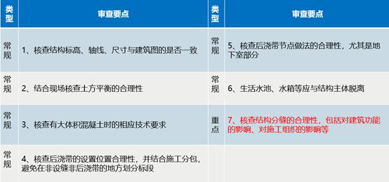 而且中海很会利用以往的项目数据进行总结反思,如下图中,常规的审查项是为保证施工图质量所作的基本审查项目。而重点审查是结合以往项目经验易出现问题项目,或一旦出现问题会引起严重后果的项目。