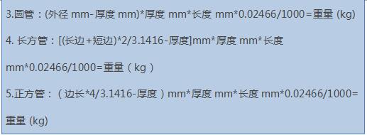 8)钢管重量(kg)=0.02466*壁厚*(外径-壁厚)*长度;