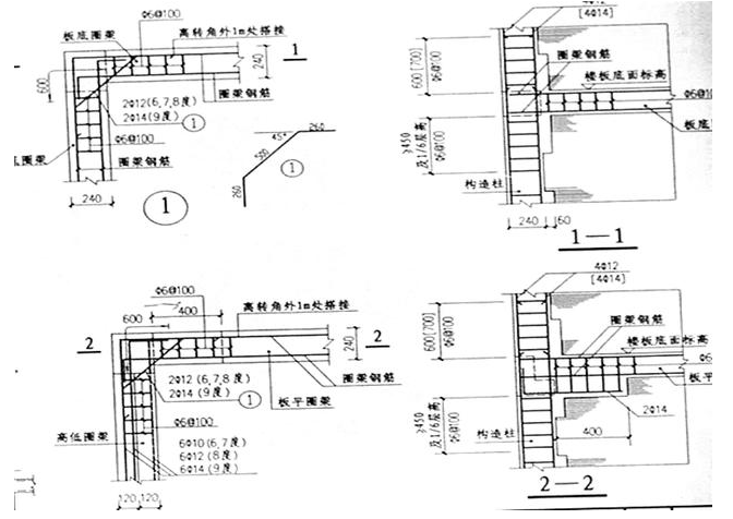 (1)砖混结构的构造柱设置位置:外墙四角、墙交接处、较大洞口两侧。
