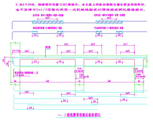 (1)钢筋能通则通,减少接头,既降低造价又改善节点区钢筋拥挤现象。