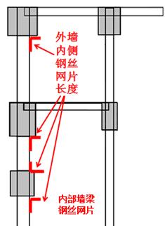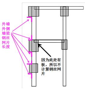 内部墙梁钢丝网长度指外墙内侧墙与梁的钢丝网片长度之和;
