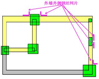 2)、如果柱的截面小于墙厚,则墙内的那面柱不计算钢丝网片;(属于非常规情况)