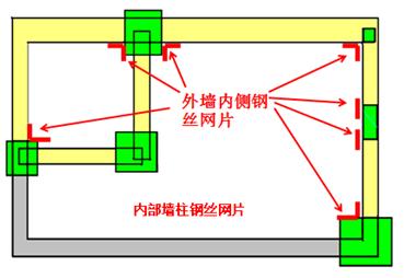内部墙柱钢丝网片长度指外墙内侧墙与柱的钢丝网片长度之和;