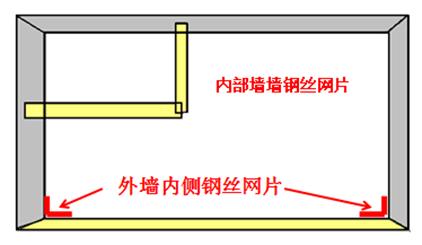 内部墙墙钢丝网片长度指外墙内侧墙与墙的钢丝网片长度之和;