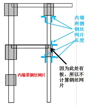内部墙梁钢丝网片长度指内墙两侧墙与梁的钢丝网片长度之和;