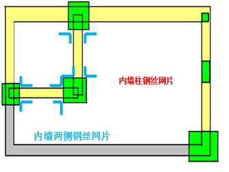 内墙两侧钢丝网片总长度 = 内部墙梁钢丝网片长度 +内部墙柱钢丝网片长度 +内部墙墙钢丝网片长度