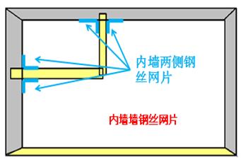 内部墙墙钢丝网片长度指内墙两侧墙与墙的钢丝网片长度之和;