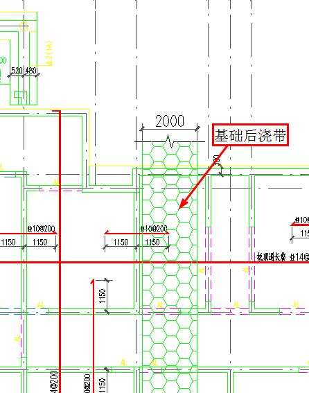 从基础平面图我们发现,本工程基础有后浇带,如图1所示。