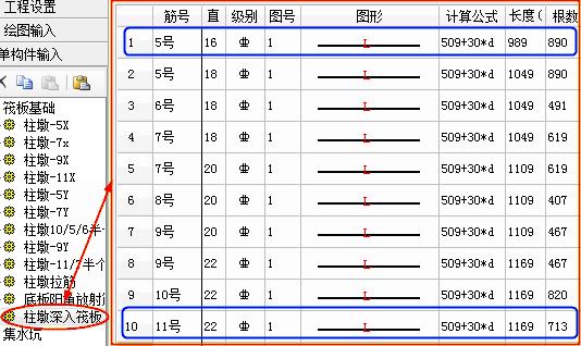 图8中的5号筋和11号筋是本例计算出的钢筋,509+30d是图纸分析计算出的数据,根数是本工程总体根数。