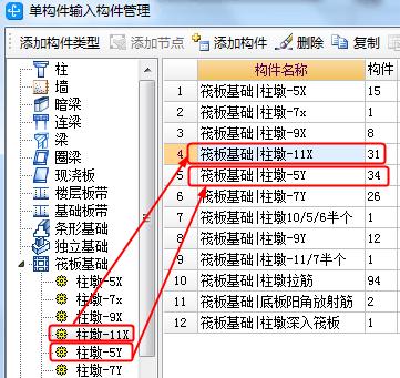 我们在单构件里分别建立柱墩-11x和柱墩-5y,填写相应的构件数量,如图9所示。