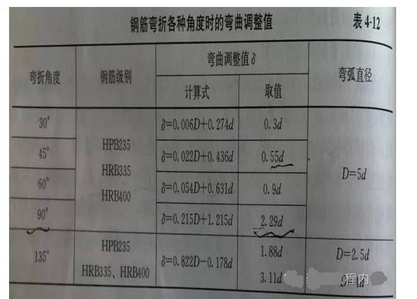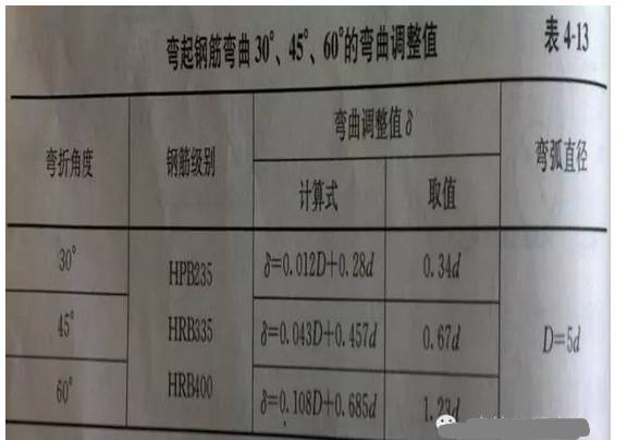 2)弯起钢筋弯曲30、45、60的弯曲调整值