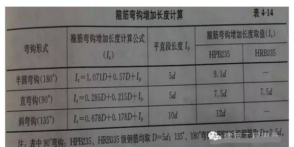 不同箍筋形式弯钩长度增加值计算计算见表4-14;