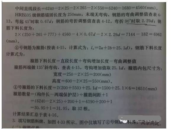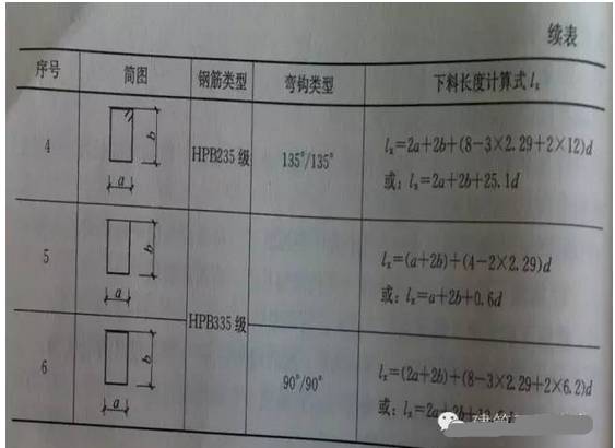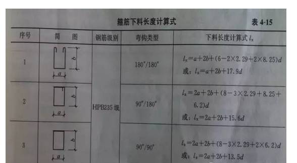 3)箍筋下料长度=直段长度+弯钩增加长度-弯曲调整值