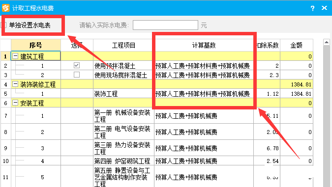 所以无论水电费如何扣,或者说水电费不扣,人材机界面的水电费的单价还是要根据市场价进行调差的。