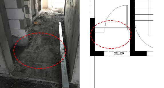 ▲改造后室内非隔墙位置有上翻梁,影响地面施工